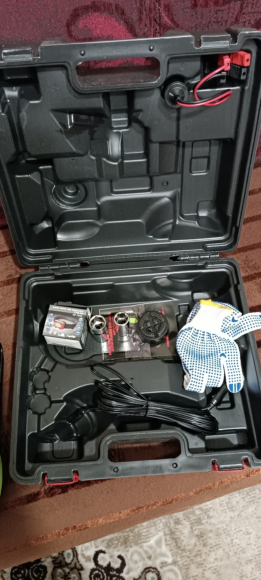 Delivery 3 days to the point of delivery. packed in a cardboard box. inside the case was rumbling as it turned out that the heads fell out of the nest, A crack in the plastic was also found at the site of the Jack's heel. not critical, does not affect work. checked the work of the Jack itself and the pump is all normal. The nut did not unscrew the nuts, but this is probably an excessive tightening. The bulbs on the Jack are shining, the pump has an automatic shutdown function to reach the set pressure.