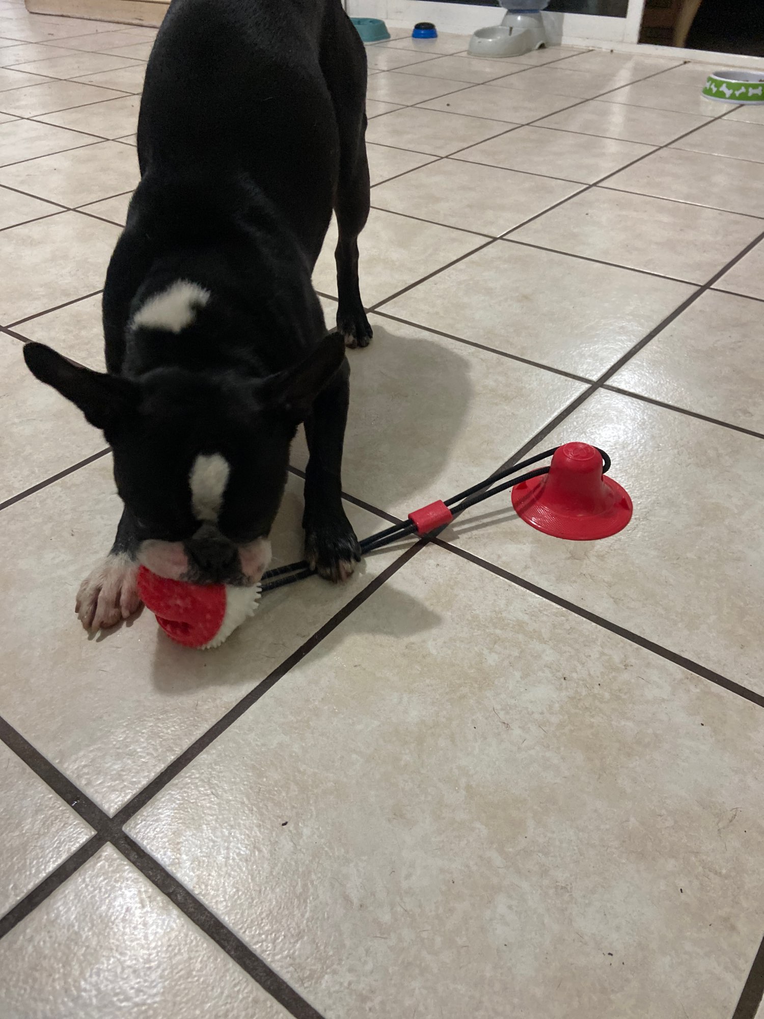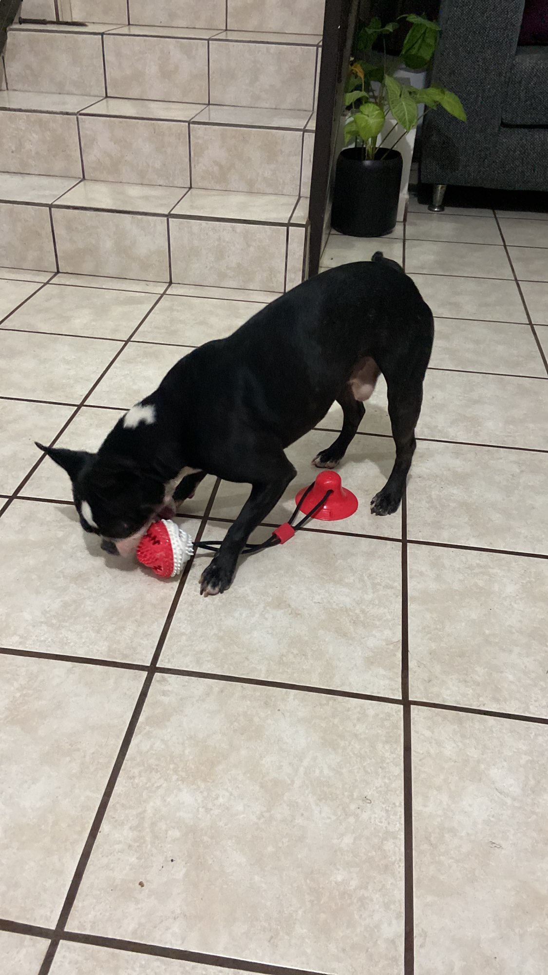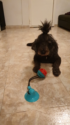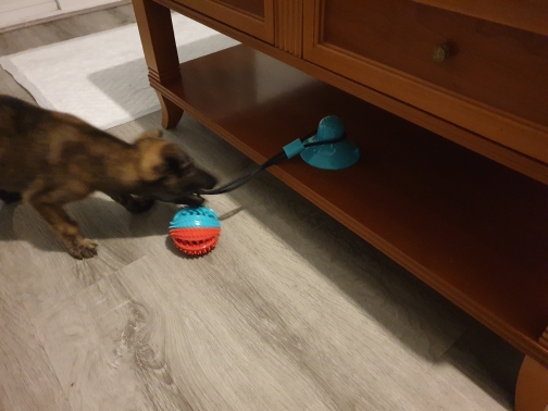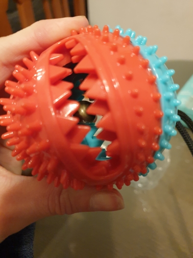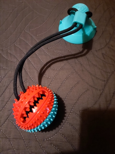 The toy is good, but the dog gnawed in 3.5 hours. The sucker and the ball remained.