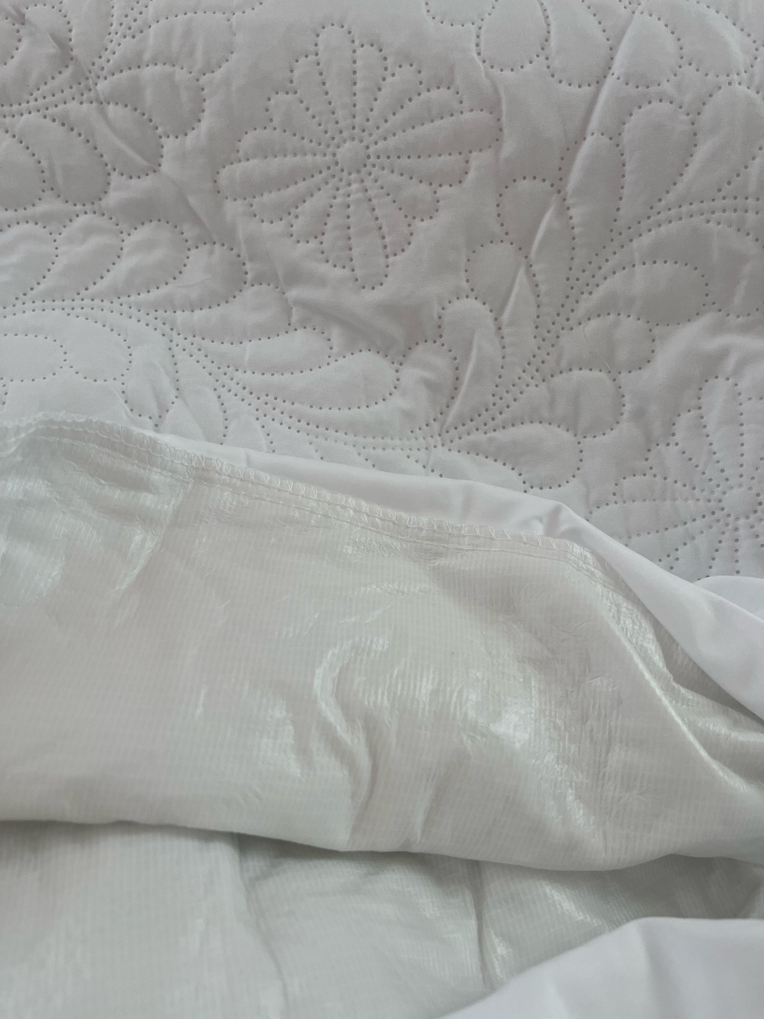 The mattress pad came quickly. Even delivered to the house. Fits in size. Consists of 2 layers: fabric outer and inner oilcloth. Checked for water resistance: the fabric layer absorbed water, and the inner layer was dry. T. E. The mattress cover can then be washed, but the mattress will remain dry. Very satisfied))) only the sides are just made of fabric, without the inner layer, so it is better not to pour anything at the edges)))